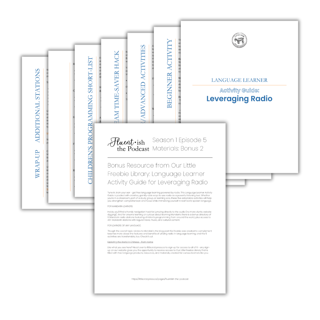 Little Crab Educational Press is thrilled to launch Fluent•ish, the Podcast - a fun, no-snobbery space for language learners (👋 hey there bilinguals, multilinguals, and aspiring polyglots!), teachers, and parents raising kids in more than one language. Each episode tackles real language-learning struggles (“the Barrier”), with expert insights and actionable solutions (“the Blueprint”) from Rebecca.