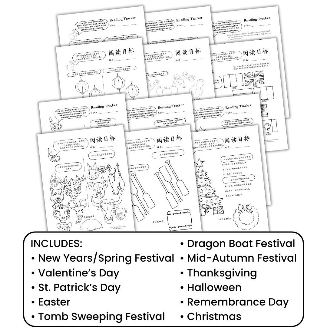 Our holiday themed trackers are interactive and instructive, offering children a chance to be creative (by colouring/designing a new picture each time they complete a book), while following instructions (of which types of books to track), culminating in a reward (to be decided with their grownup) for their hard work and dedication.