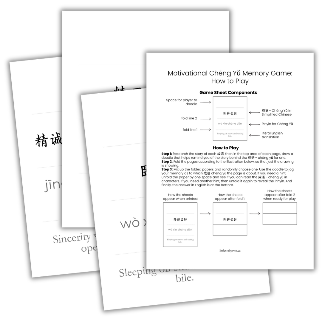 • to exercise their memory skills and helps players learn 10 new 成语 - chéng yǔ that speak to perseverance, positive mindset, and motivation