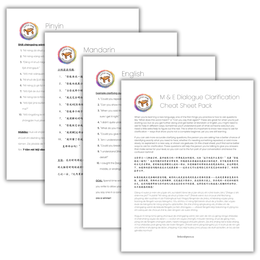 • 10 example questions for clarifying your translation troubles (again, in English, Simplified Chinese, and Pinyin)