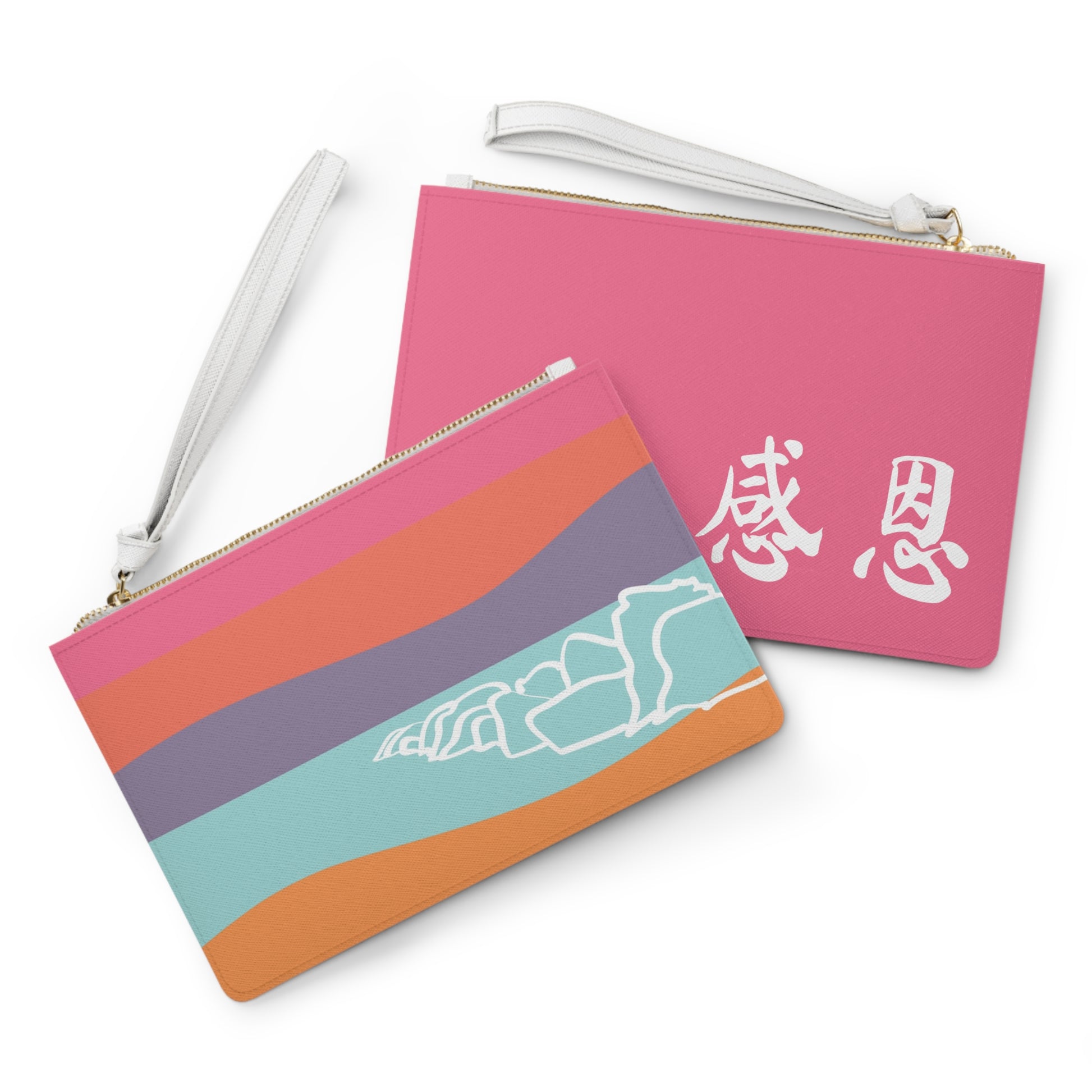 Clutch Bag - Beach Motif 感恩 Wristlet Handbag with Petal Pink Back