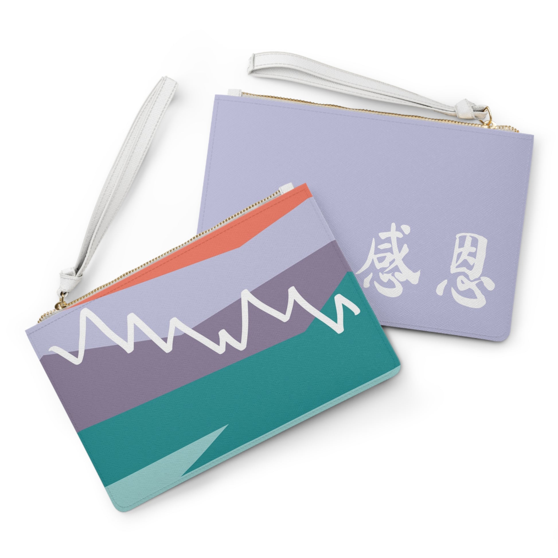 Clutch Bag - Mountain Motif 感恩 Wristlet Handbag with Chalk Purple Back
