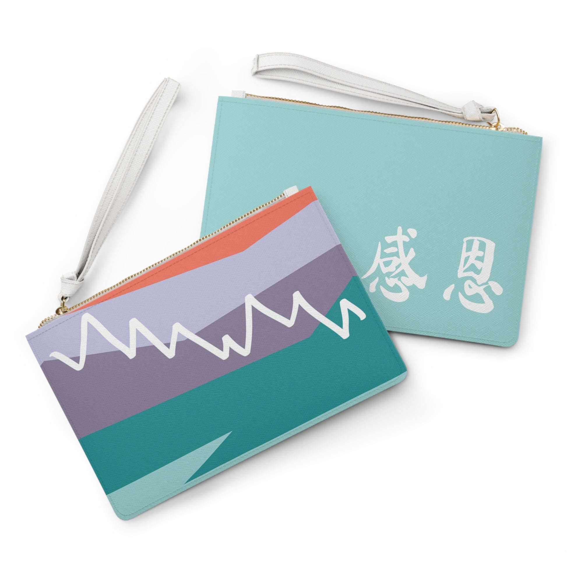 Clutch Bag - Mountain Motif 感恩 Wristlet Handbag with Mint Blue Back