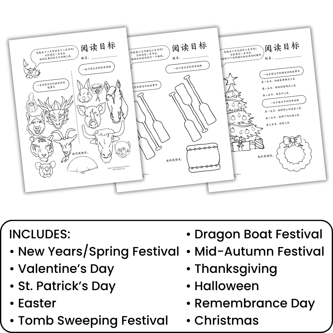 Early Learning Reading Tracker - Mandarin Only Bundle: Year of Holidays Theme