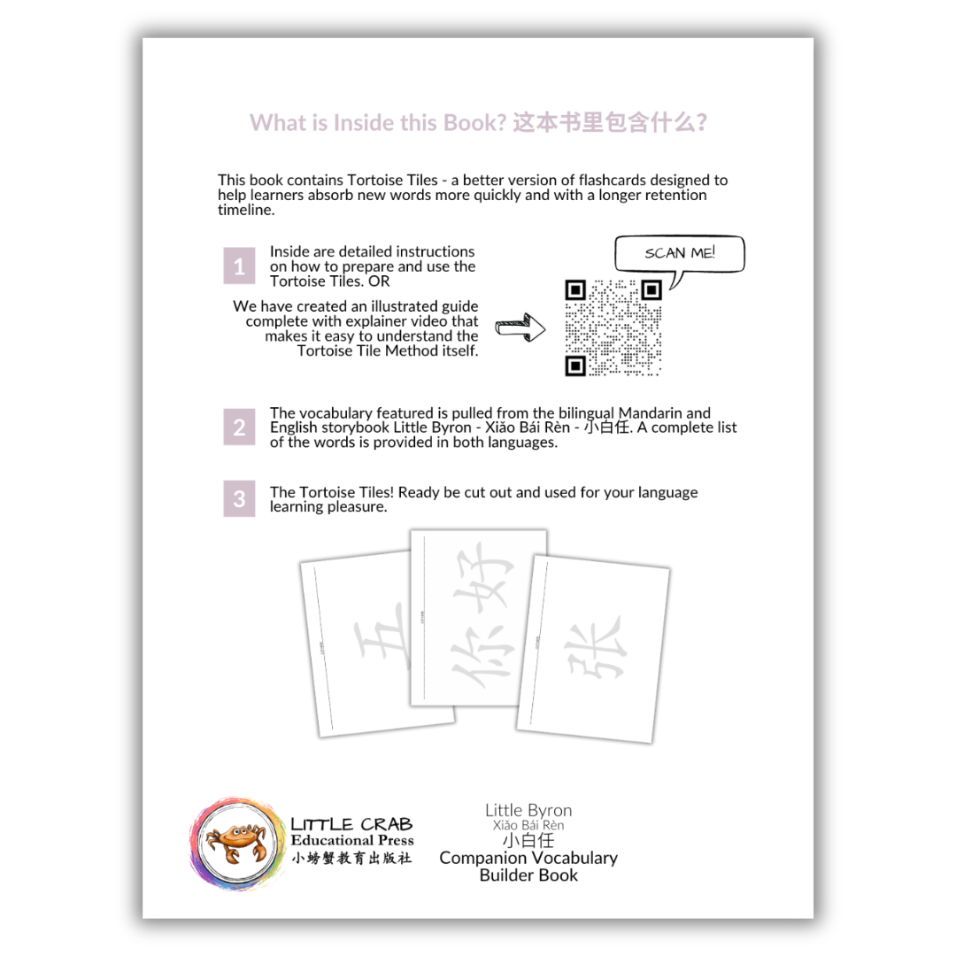 Little Byron - Xiǎo Bái Rèn - 小白任 Companion Vocabulary Builder Book: Learn 40+ Mandarin Words From the Storybook utilizes our proprietary Tortoise Tile Method to help you: