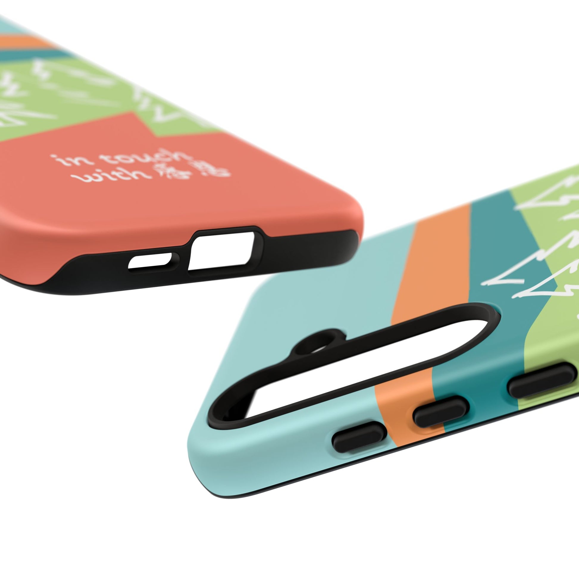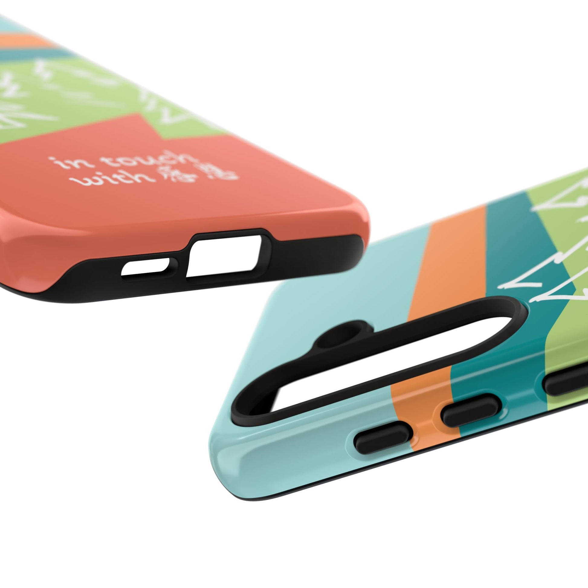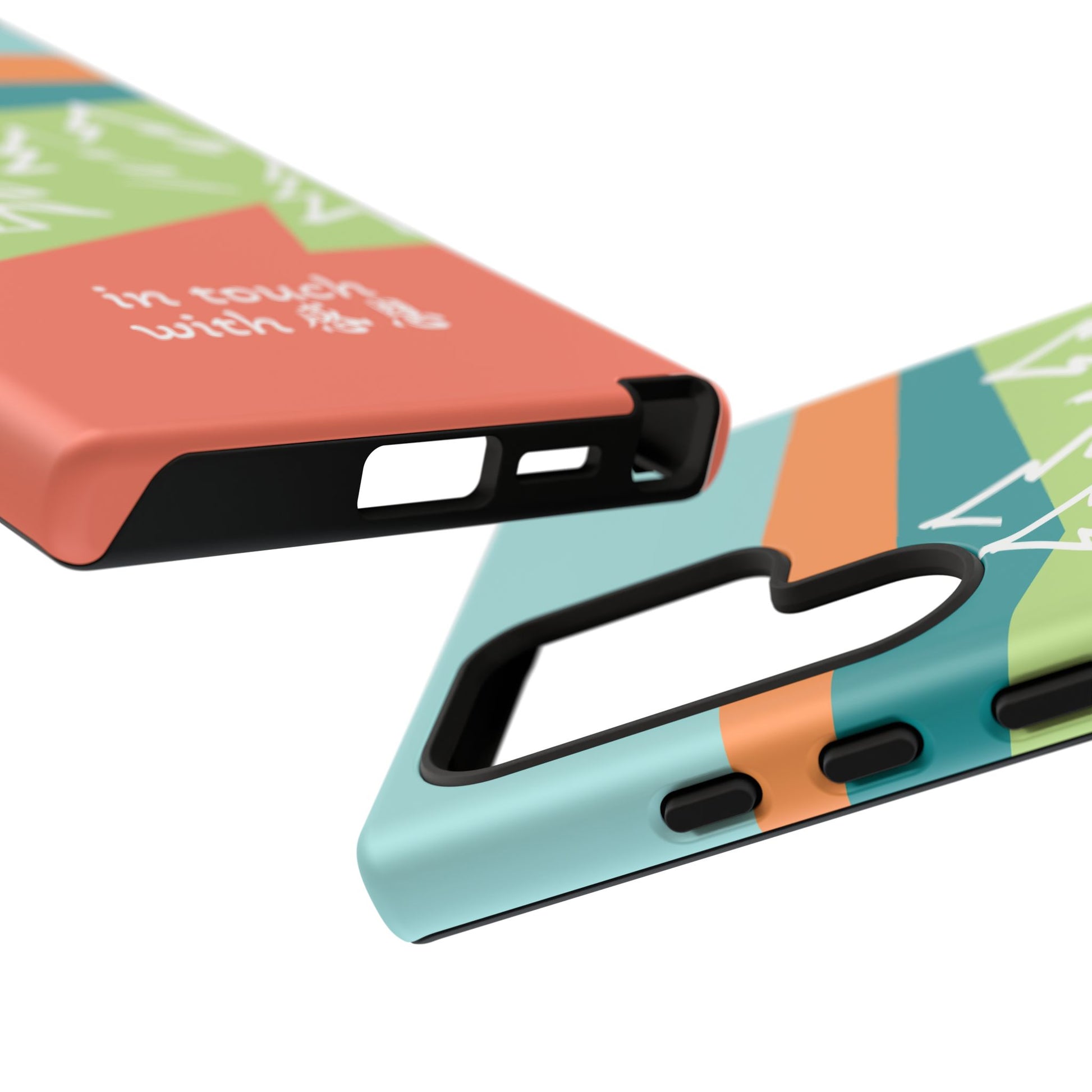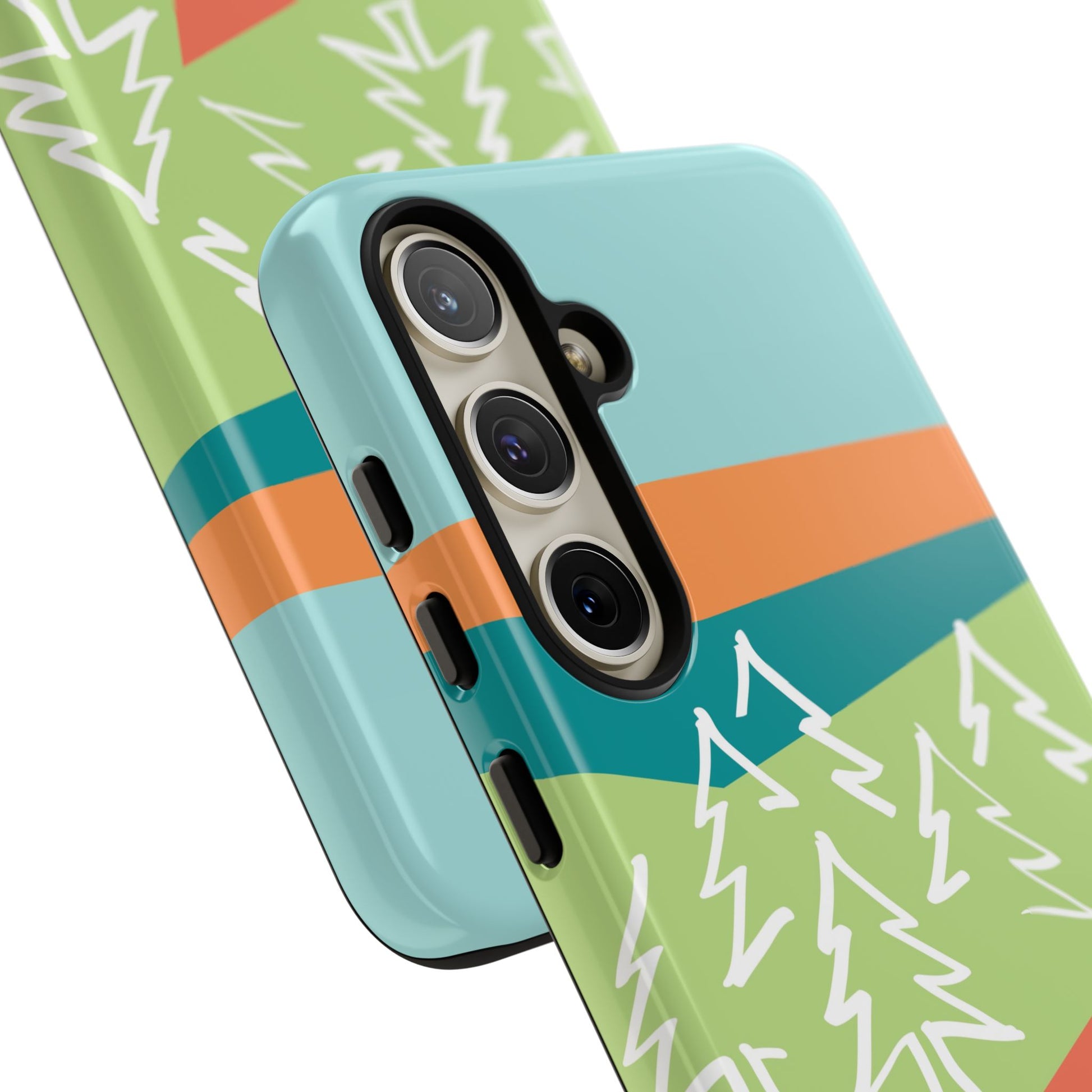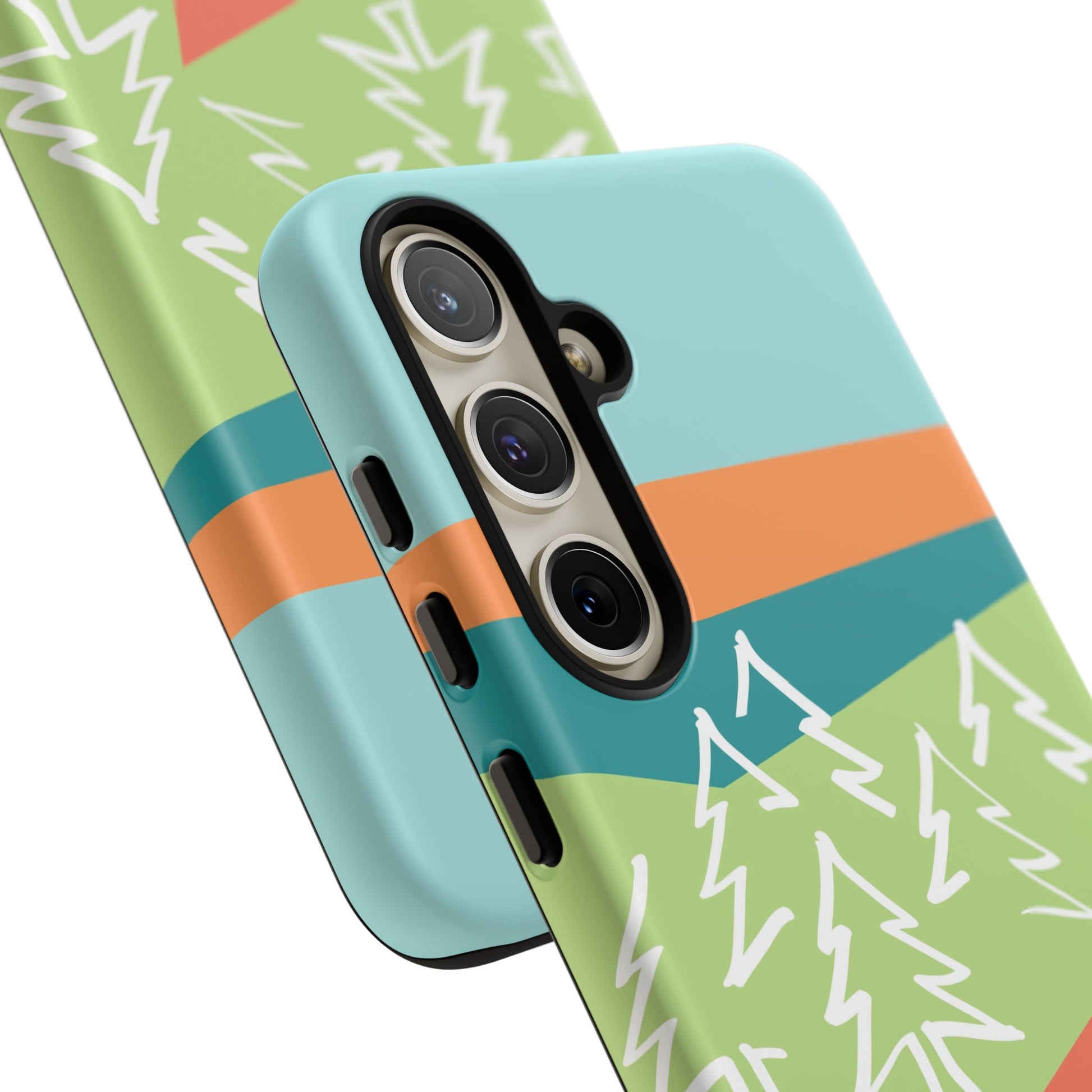A durable and impact-resistant phone case featuring a hand-illustrated colour-blocked west coast forest motif with a 感恩 message. Perfect for adults and young adults who appreciate unique, artistic designs and want to protect their phone in style. Ideal for gifting on birthdays, holidays, or as a thank you gesture.