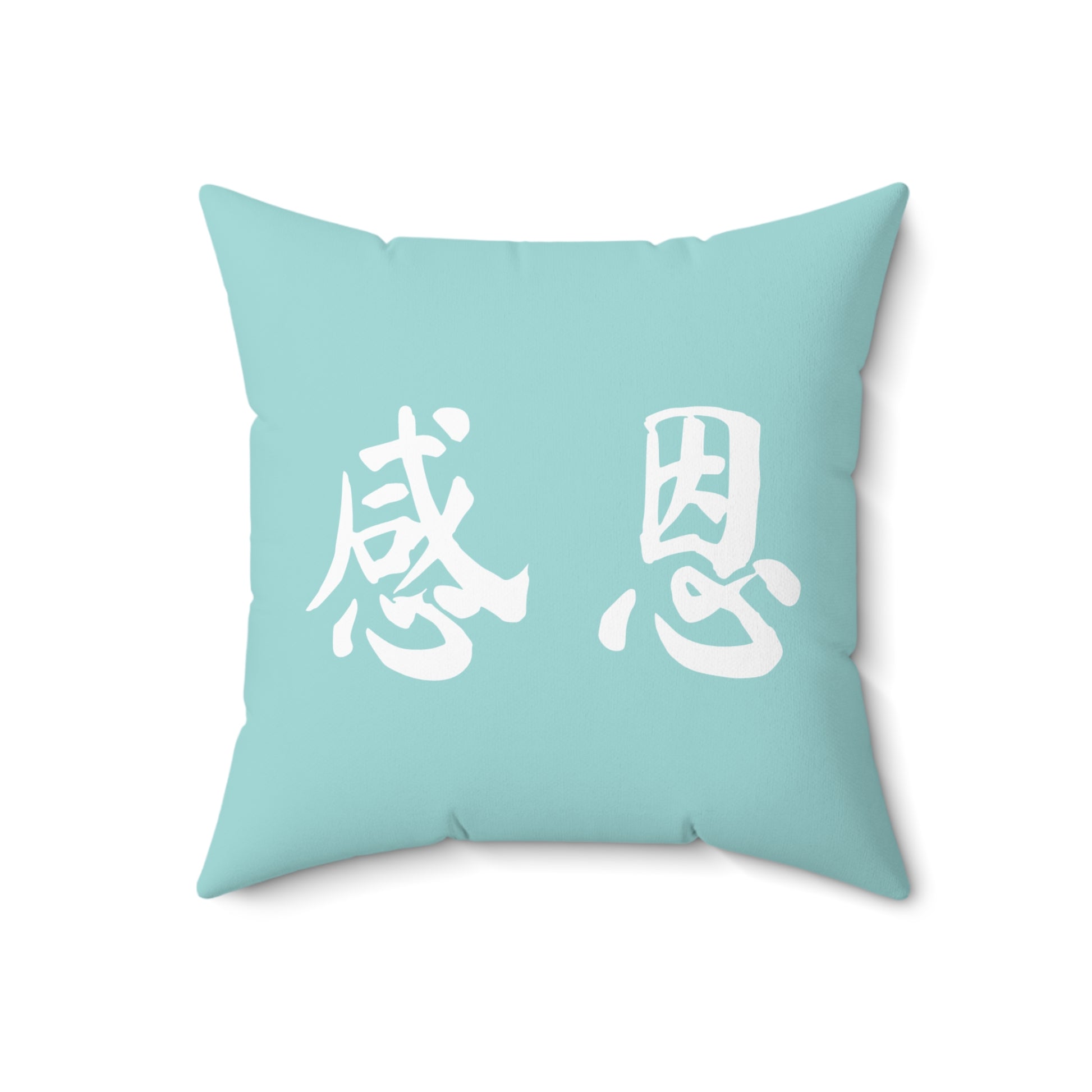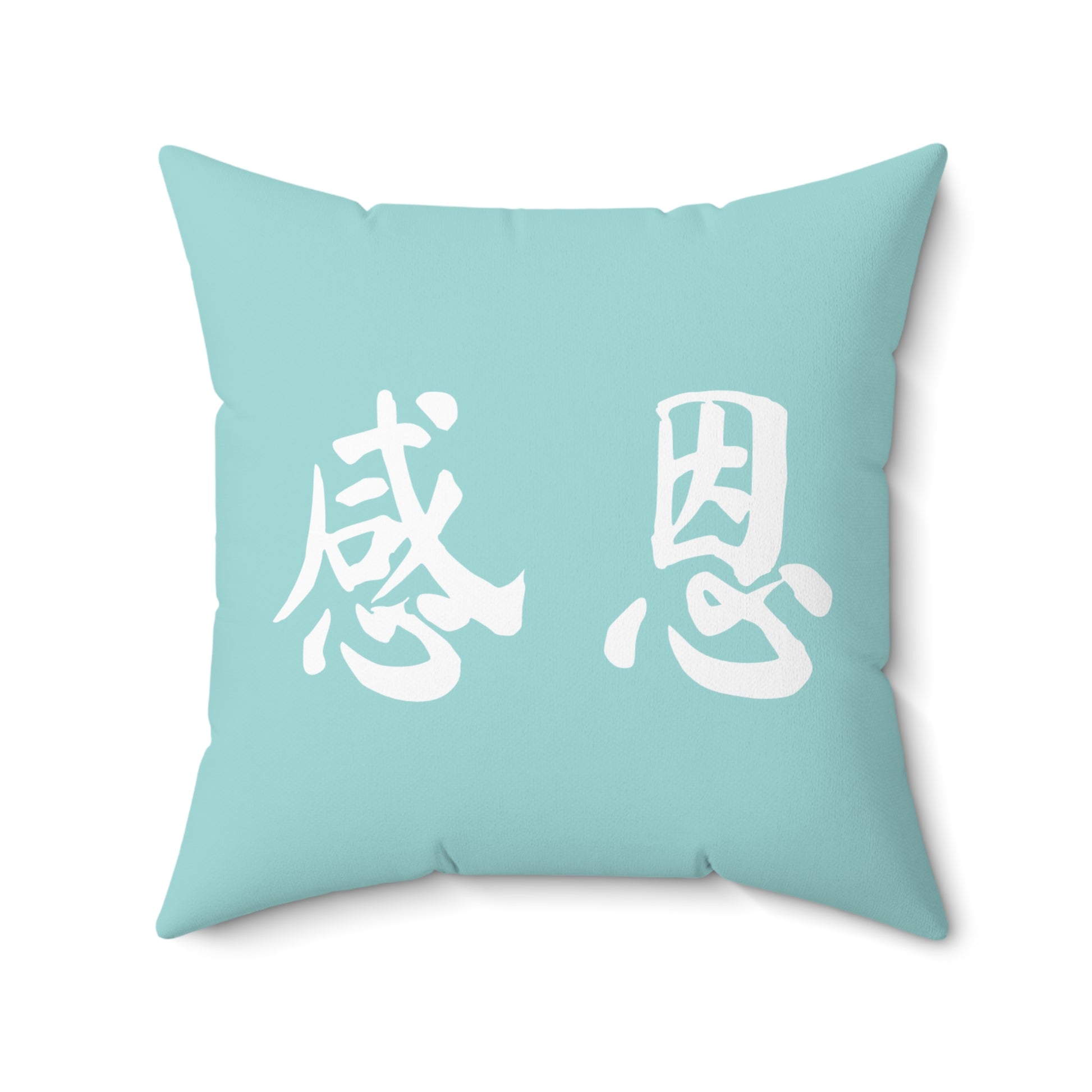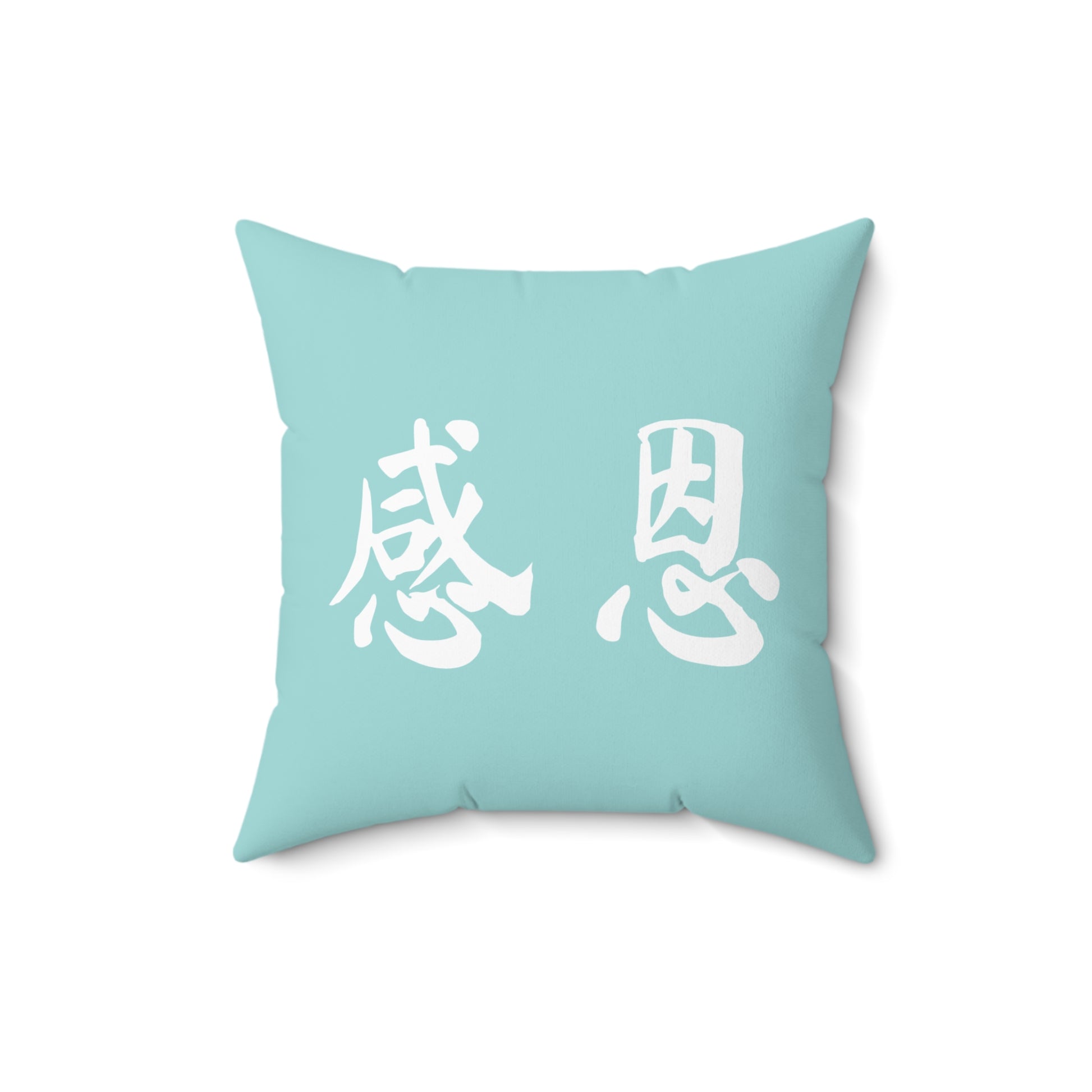 Square Pillow - Beach 感恩 Throw Pillow with Solid Mint Blue Back