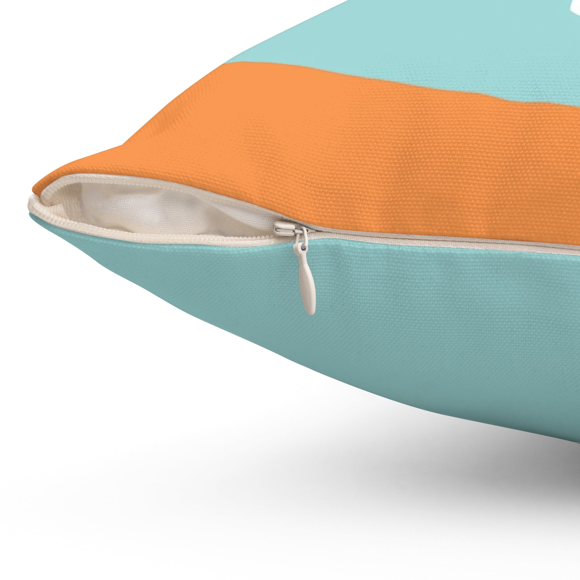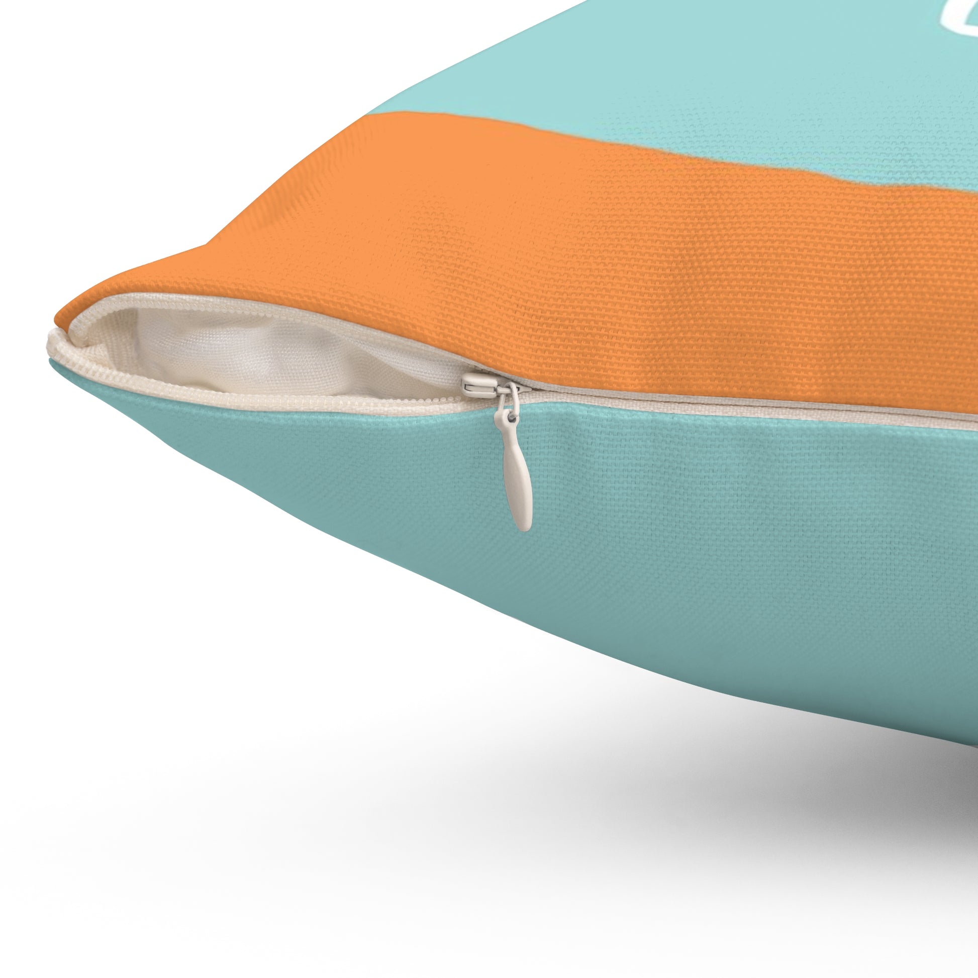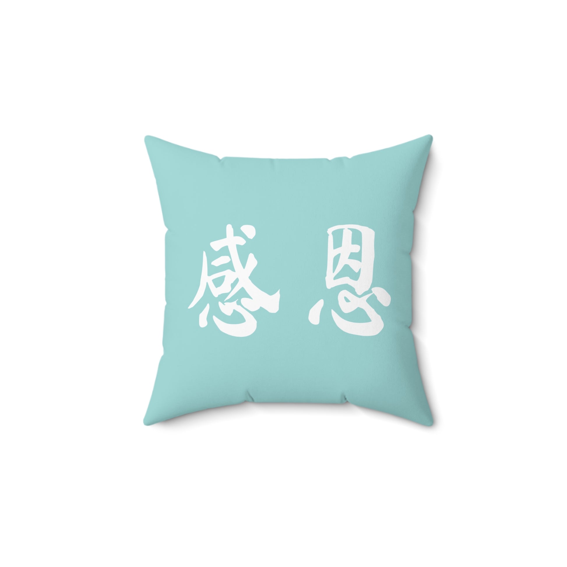 Square Pillow - Beach 感恩 Throw Pillow with Solid Mint Blue Back