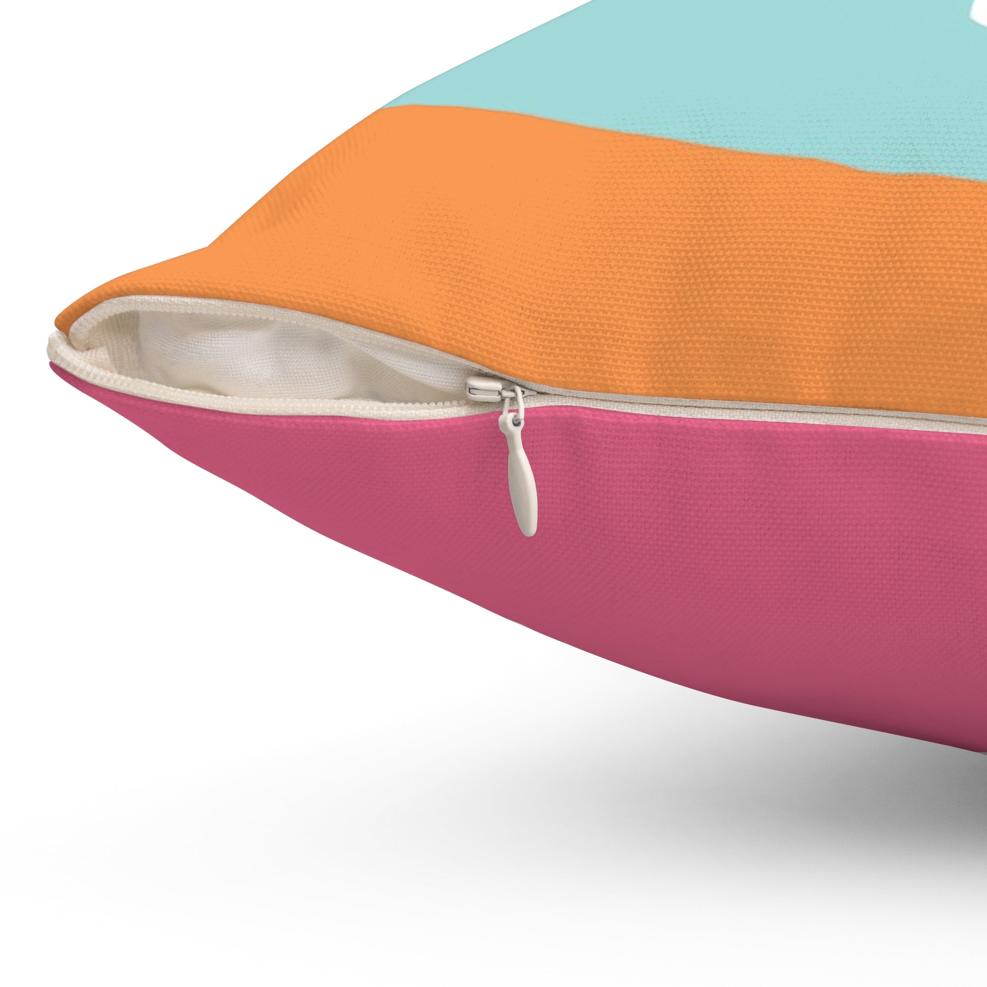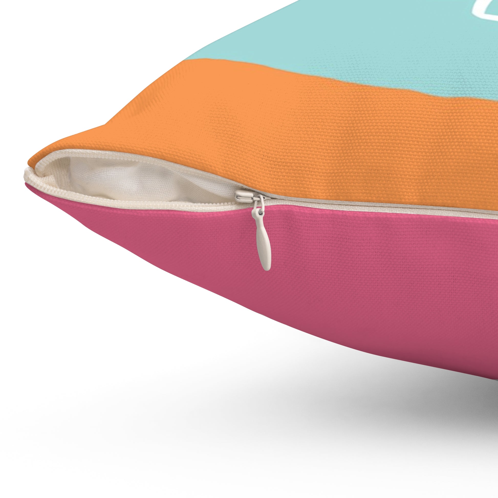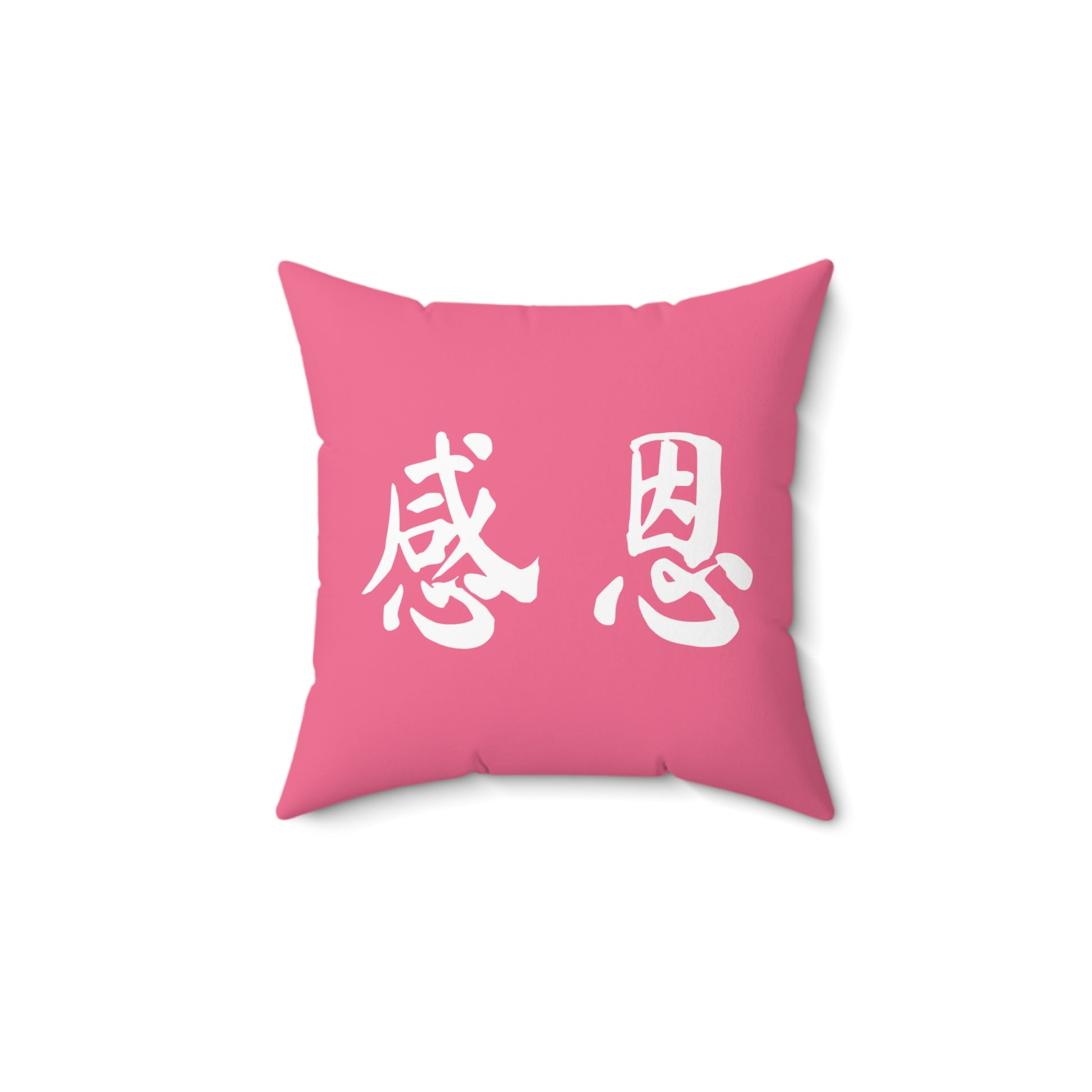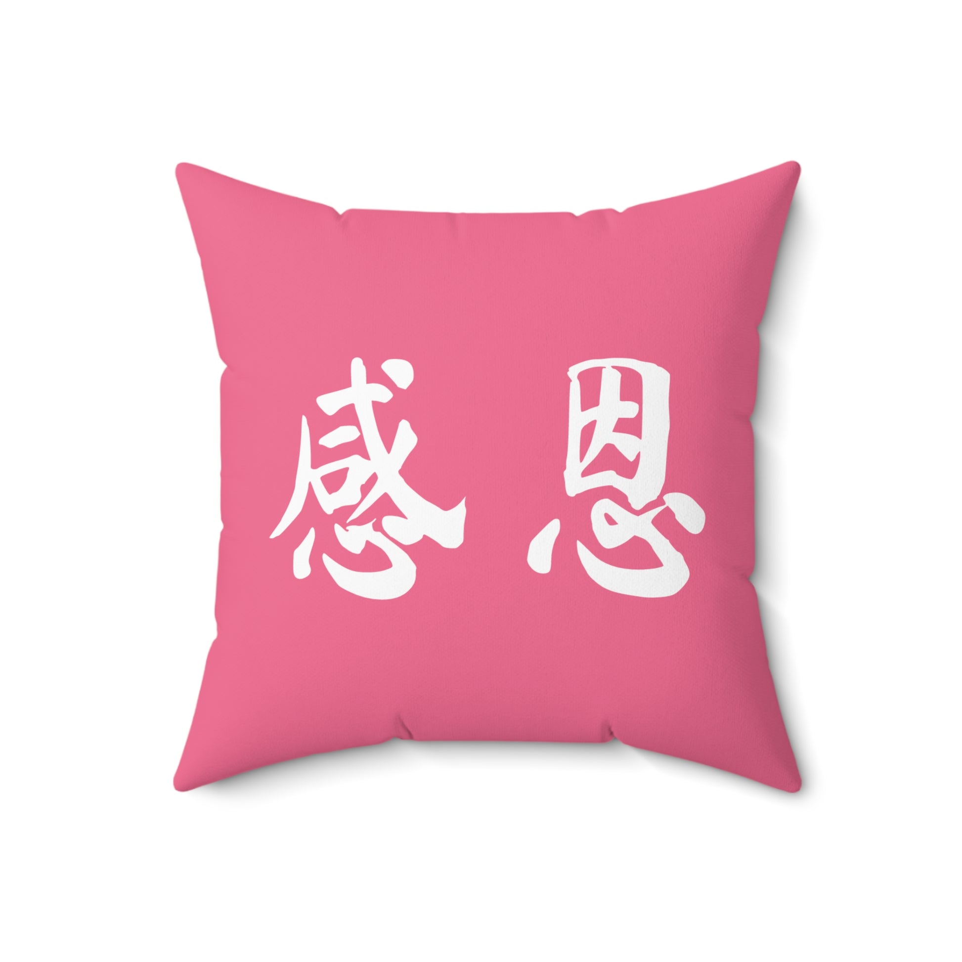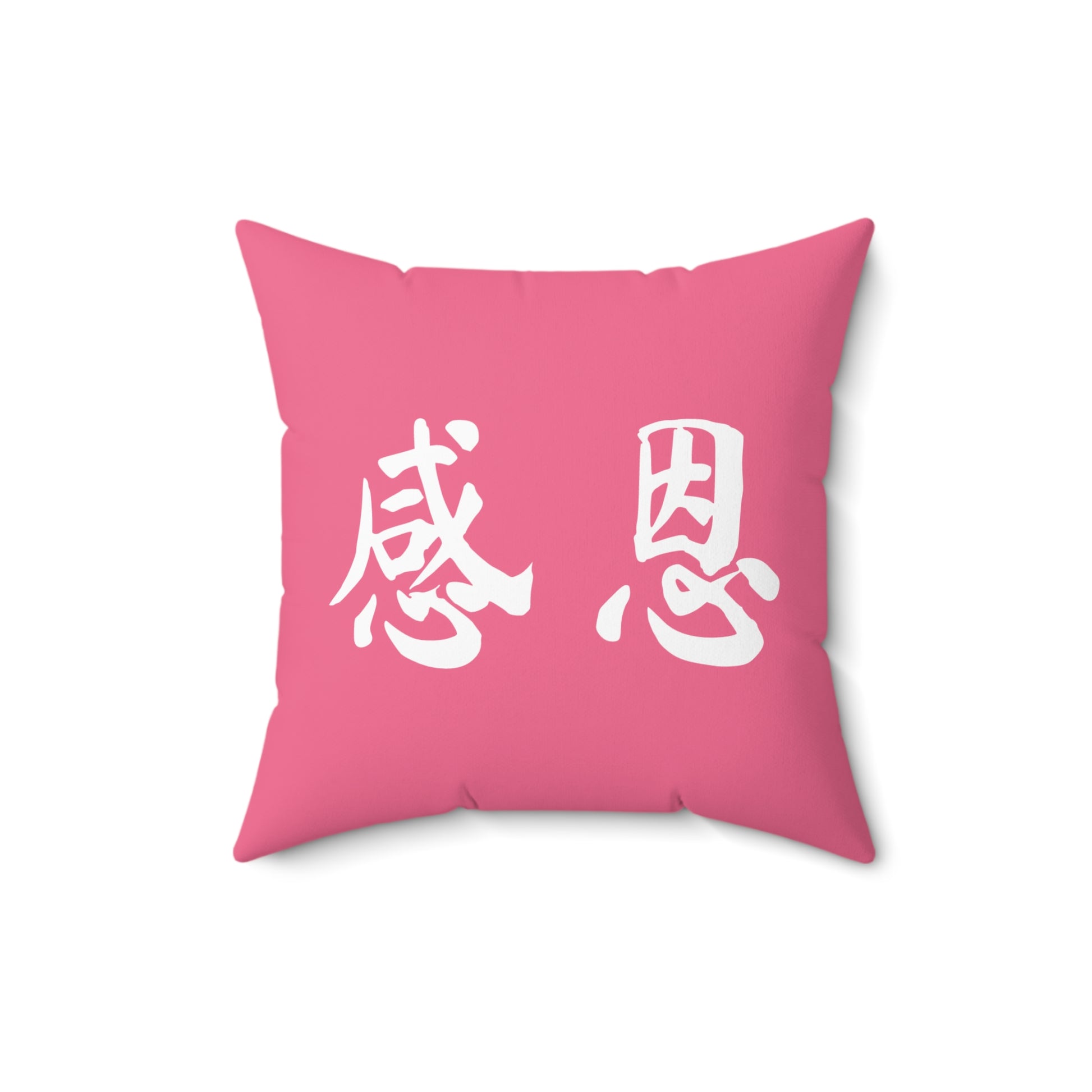 Square Pillow - Beach 感恩 Throw Pillow with Solid Petal Pink Back