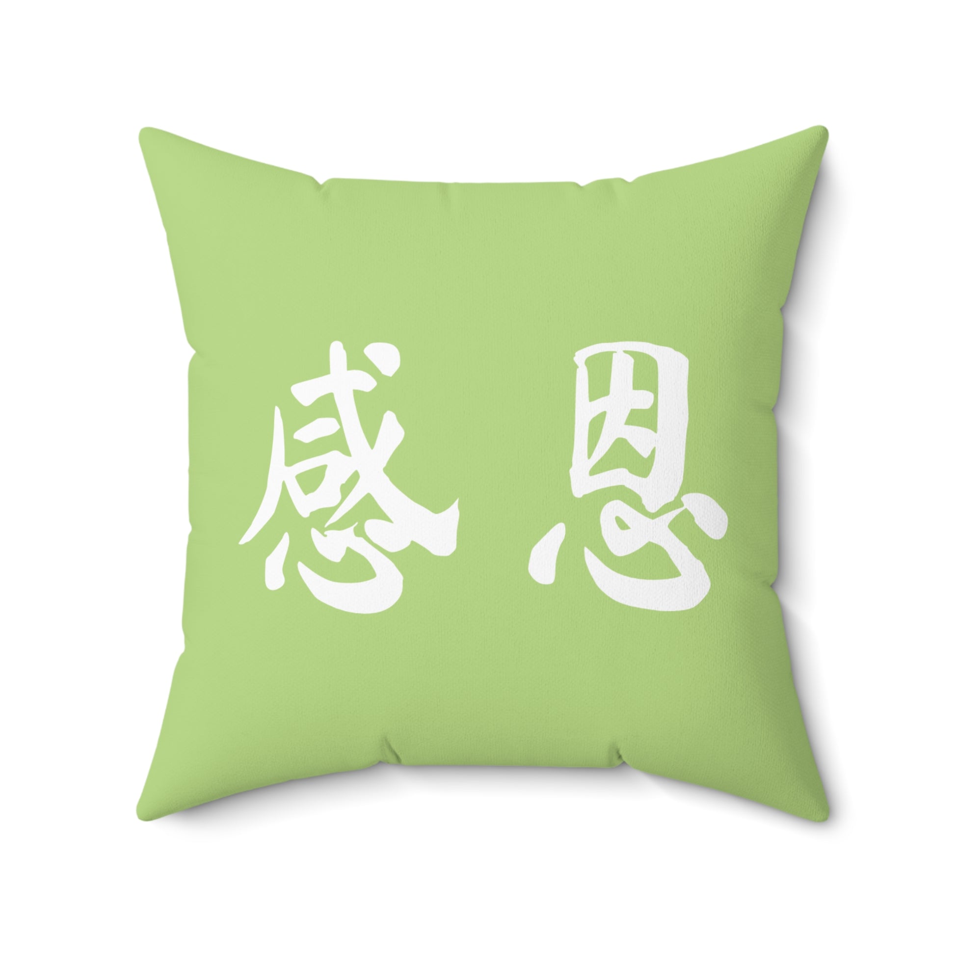 Square Pillow - Forest 感恩 Throw Pillow with Solid Pear Green Back