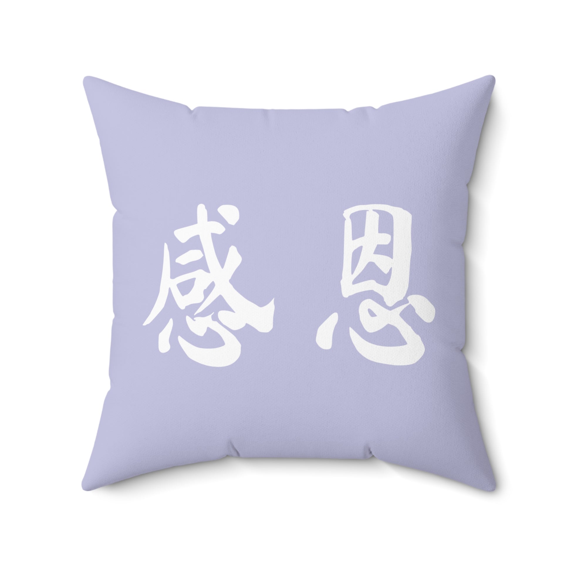 Square Pillow - Mountain 感恩 Throw Pillow with Solid Chalk Purple Back
