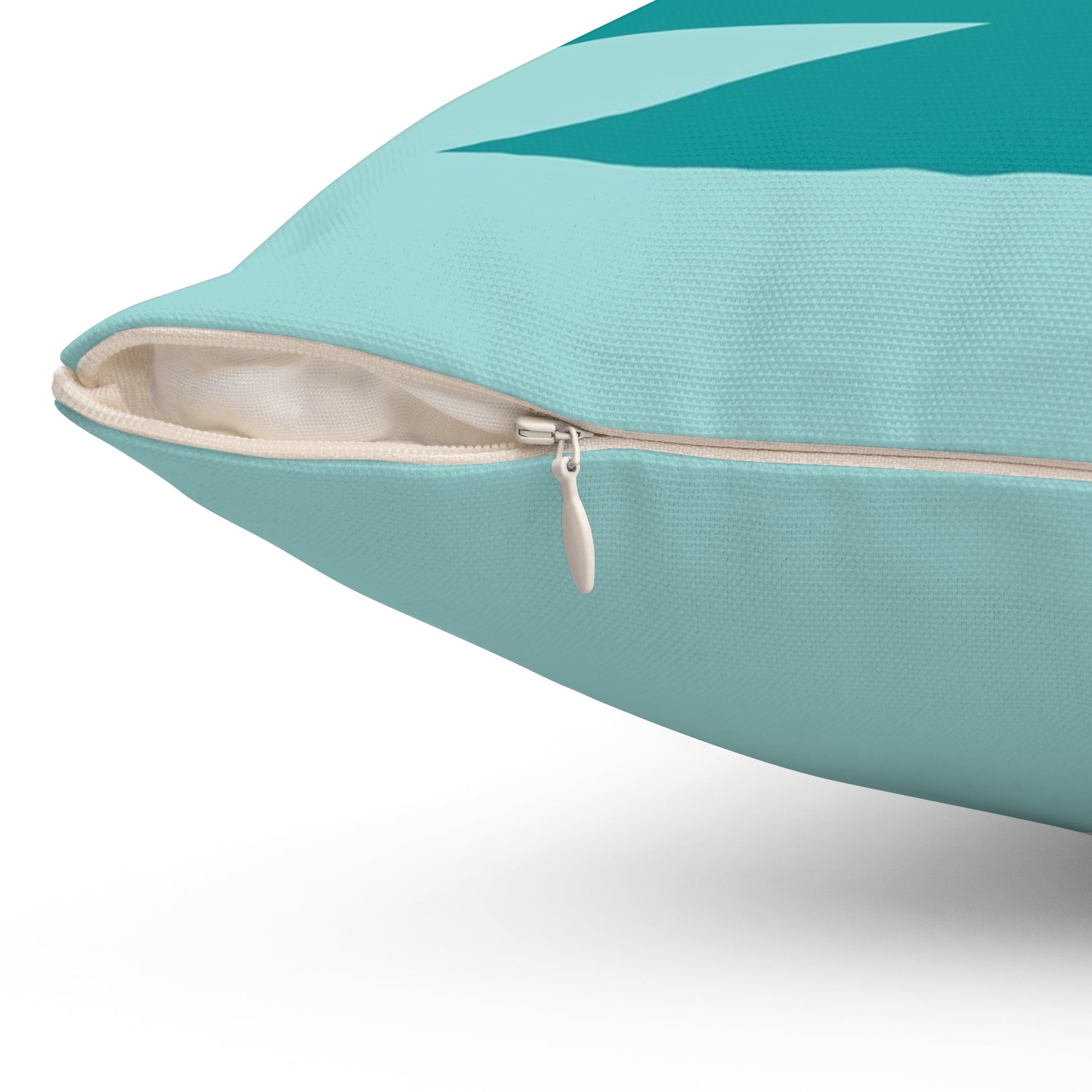 Square Pillow - Mountain 感恩 Throw Pillow with Solid Mint Blue Back