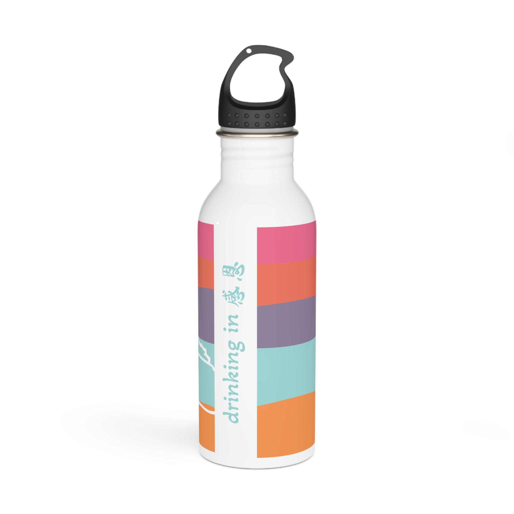 Stainless Steel Water Bottle - Beach 感恩 Motif with Mint Blue Message
