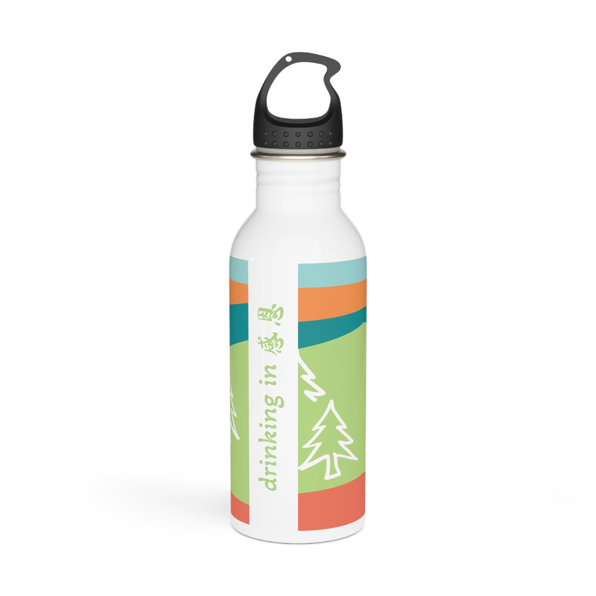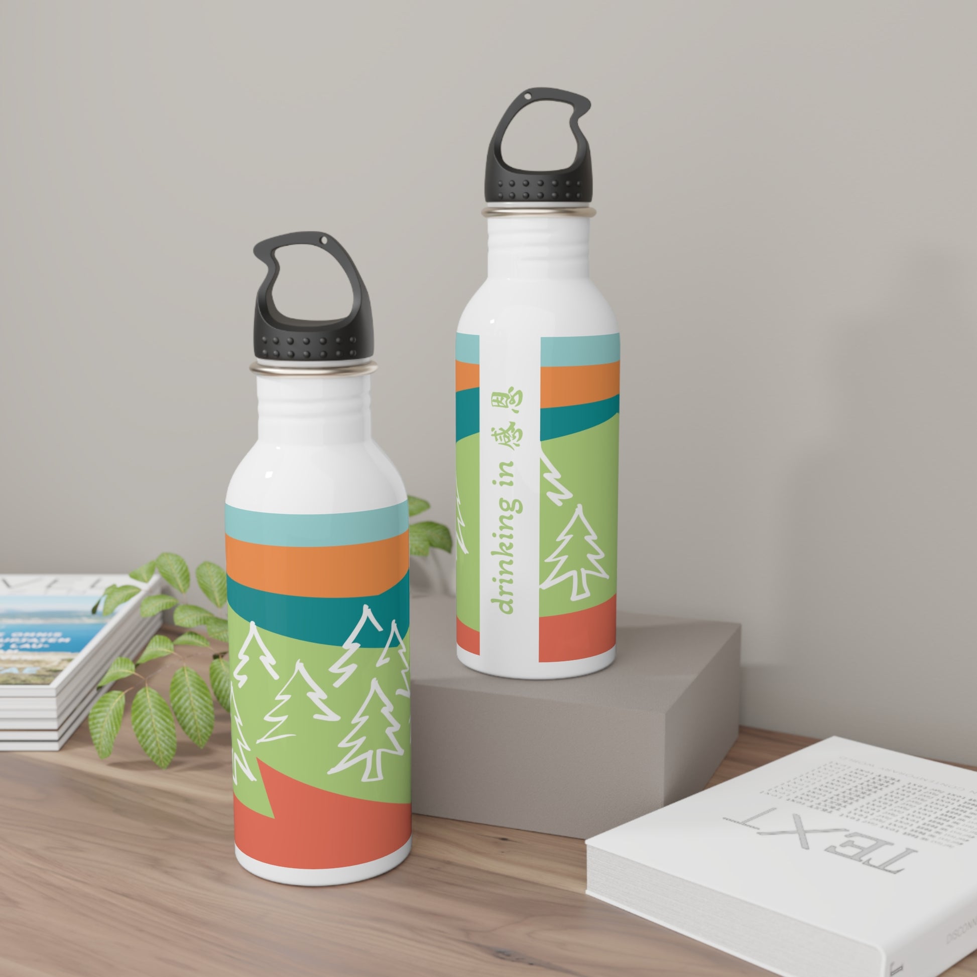 Stainless Steel Water Bottle - Forest 感恩 Motif with Pear Green Message