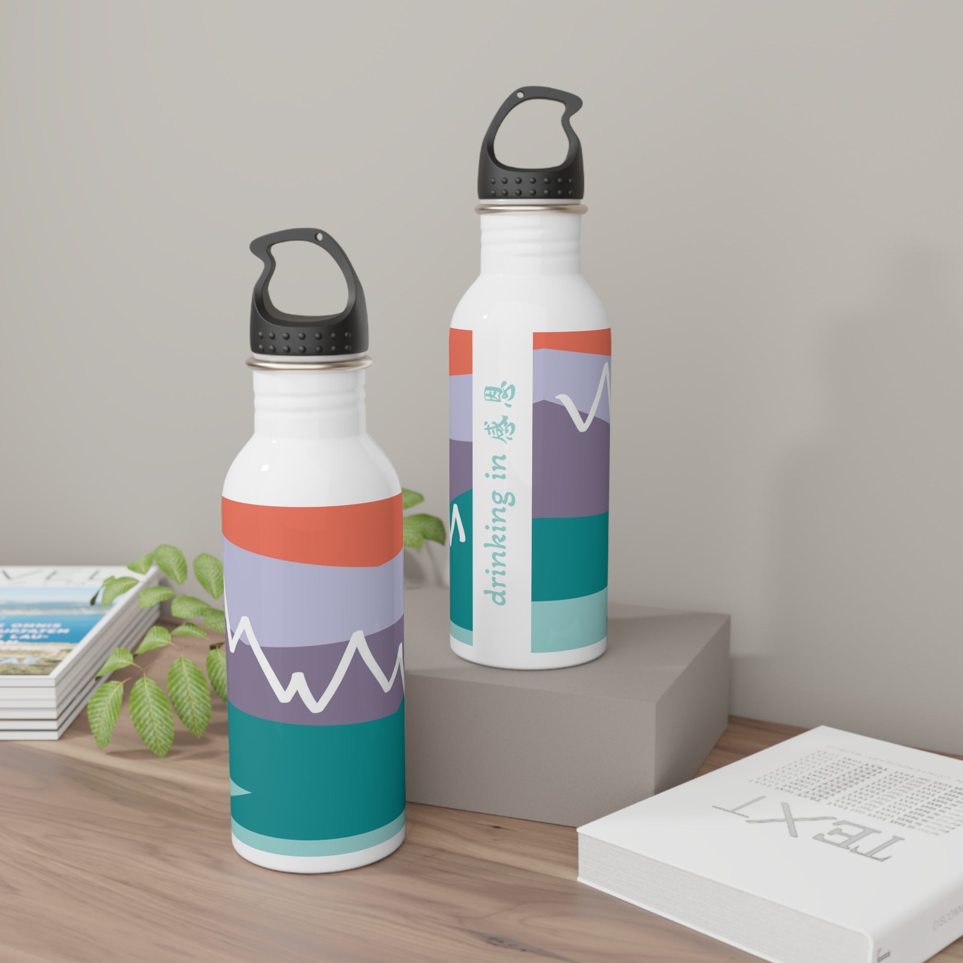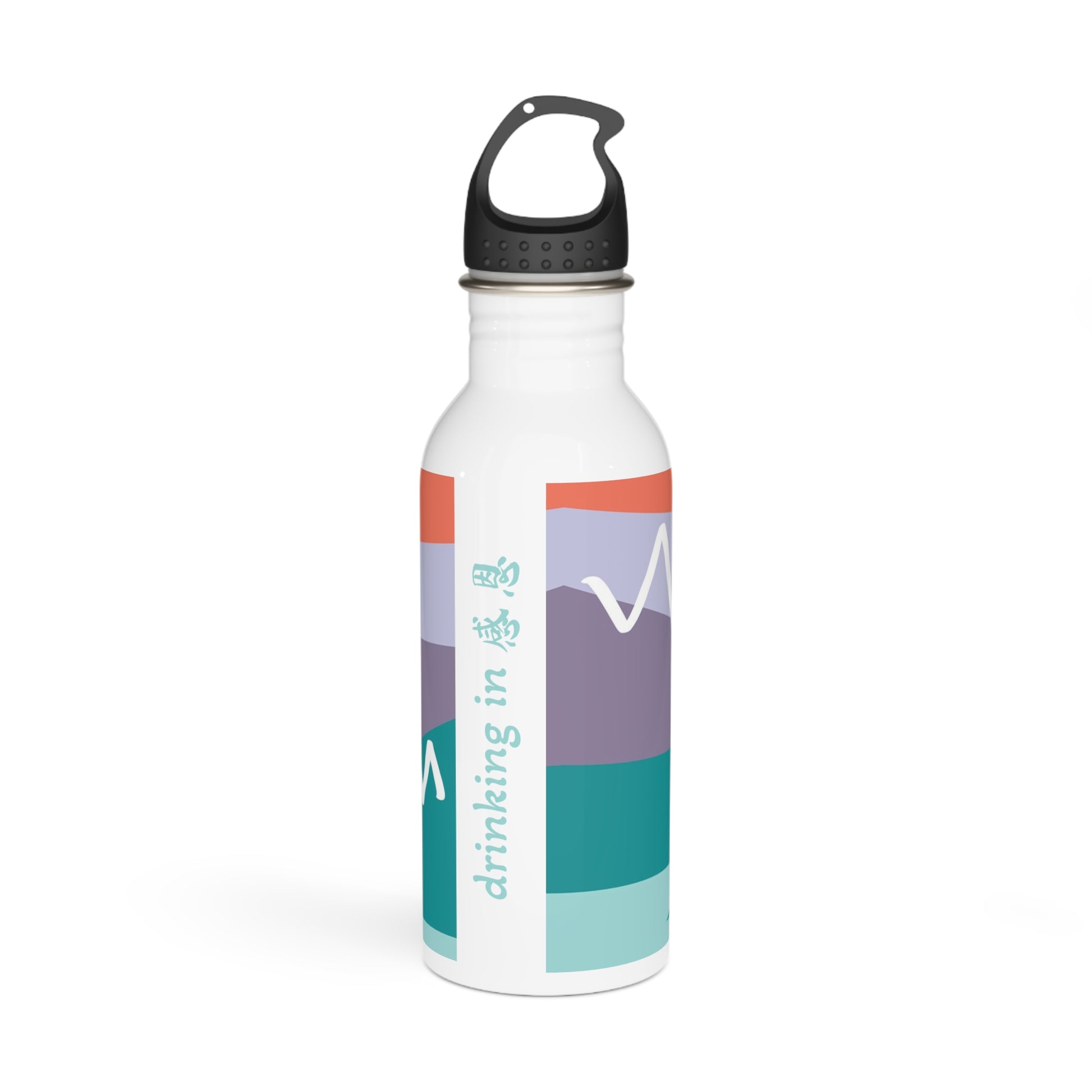 Stainless Steel Water Bottle - Mountain 感恩 Motif with Mint Blue Message