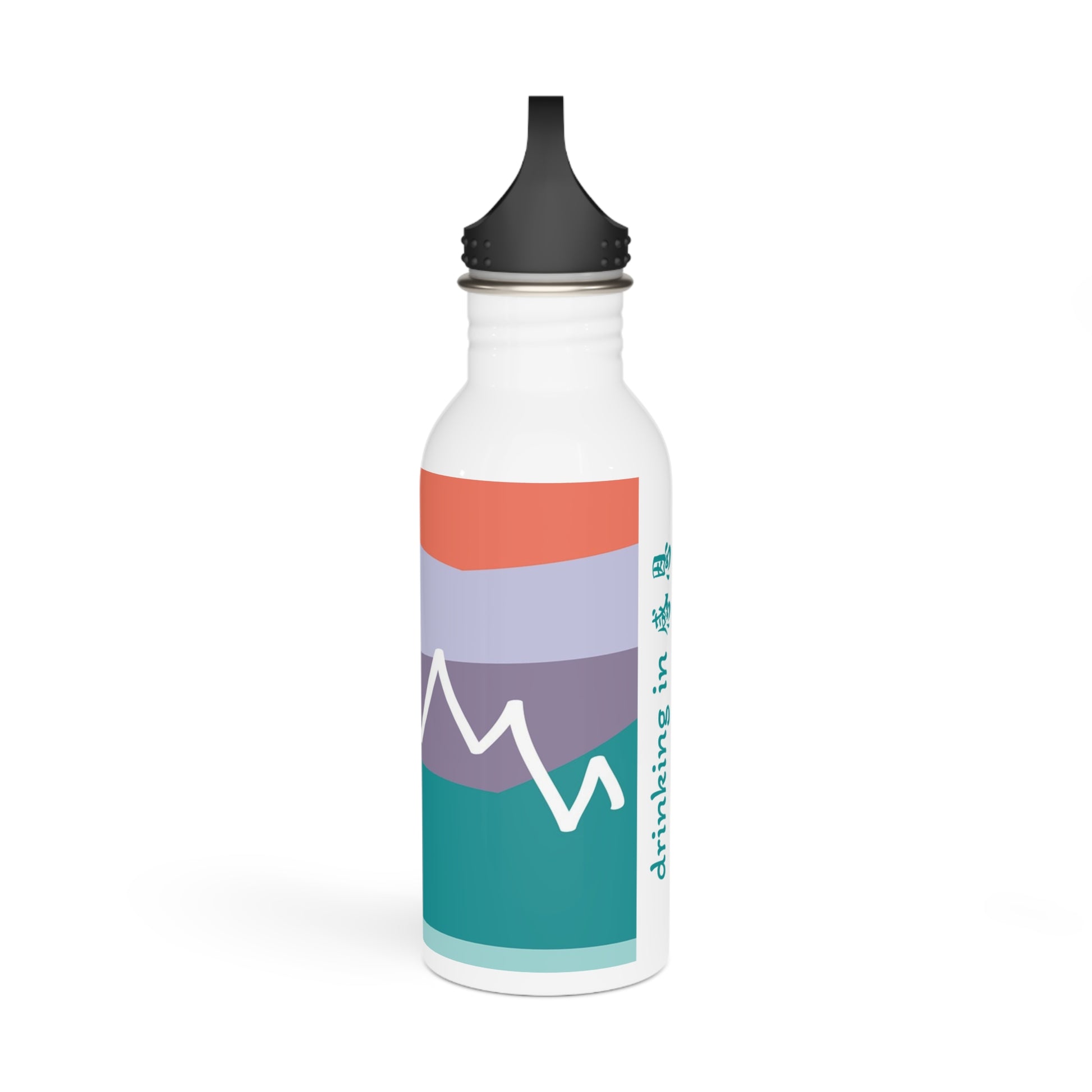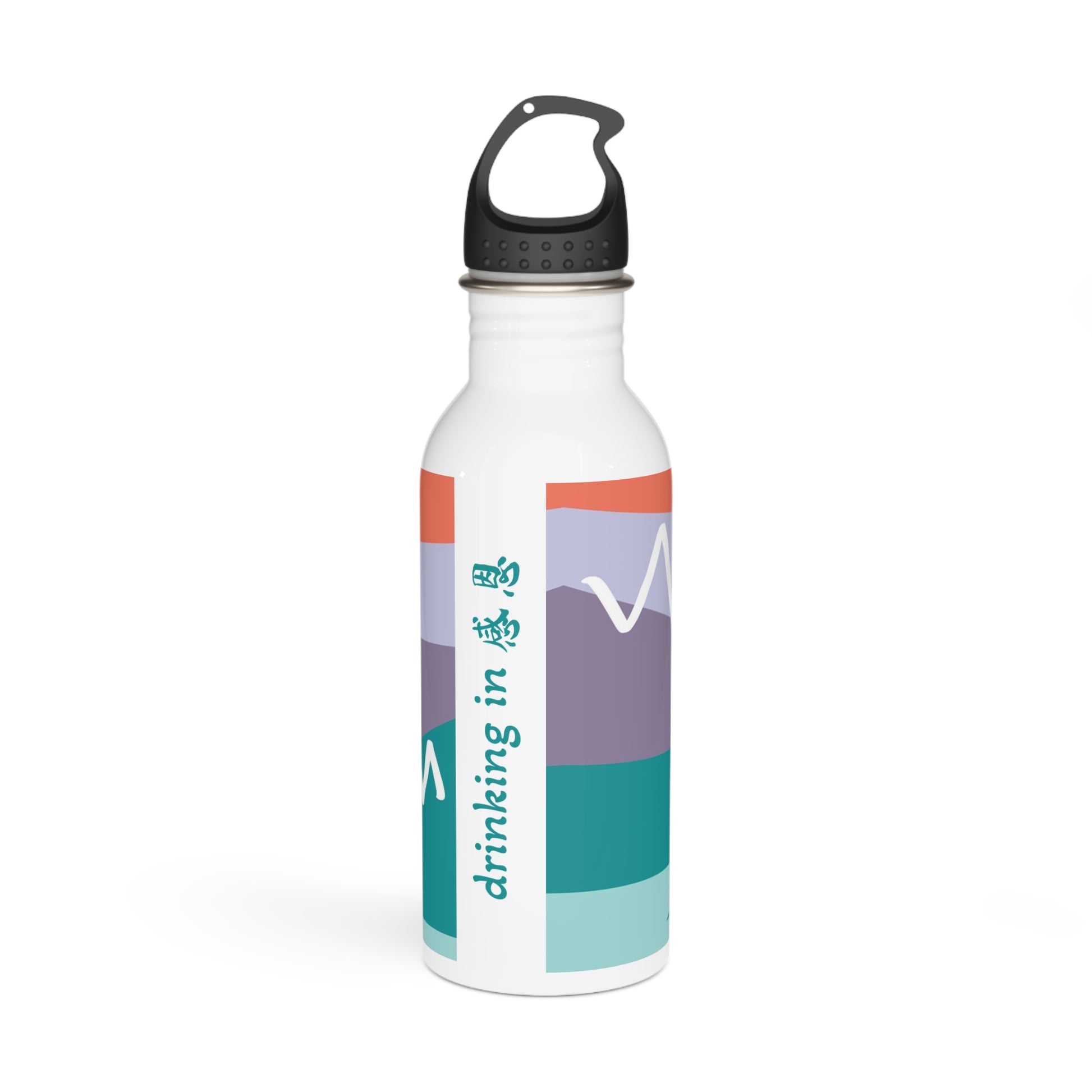 Stainless Steel Water Bottle - Mountain 感恩 Motif with Tropic Teal Message