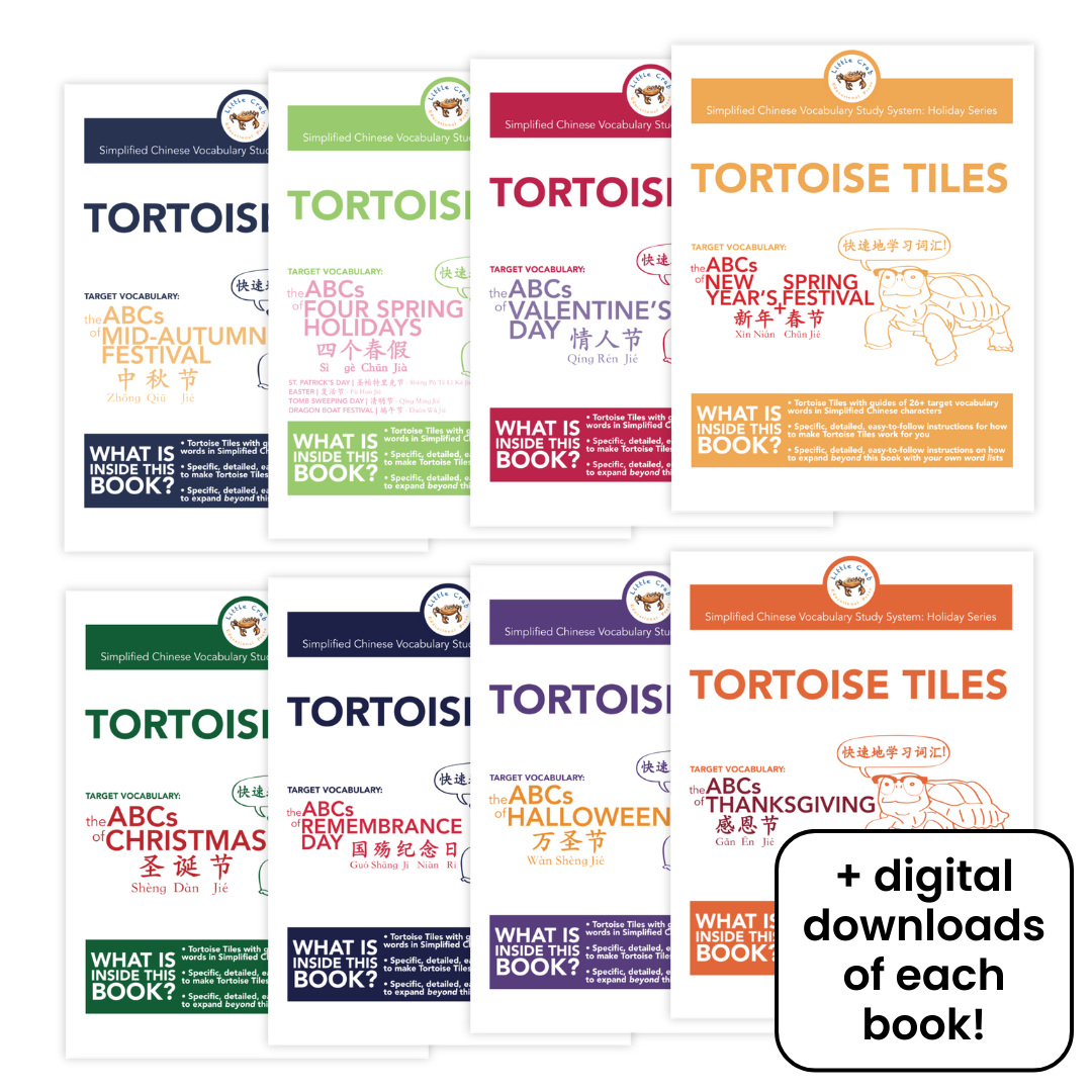 For more information on Tortoise Tiles be sure to check out our blog post where we introduced the Tortoise Tile Method. BONUS! The digital download component of this bundle includes our free guide to creating your own Tortoise Tiles for studying nearly any new vocabulary (in an additional language or in your own native one)!