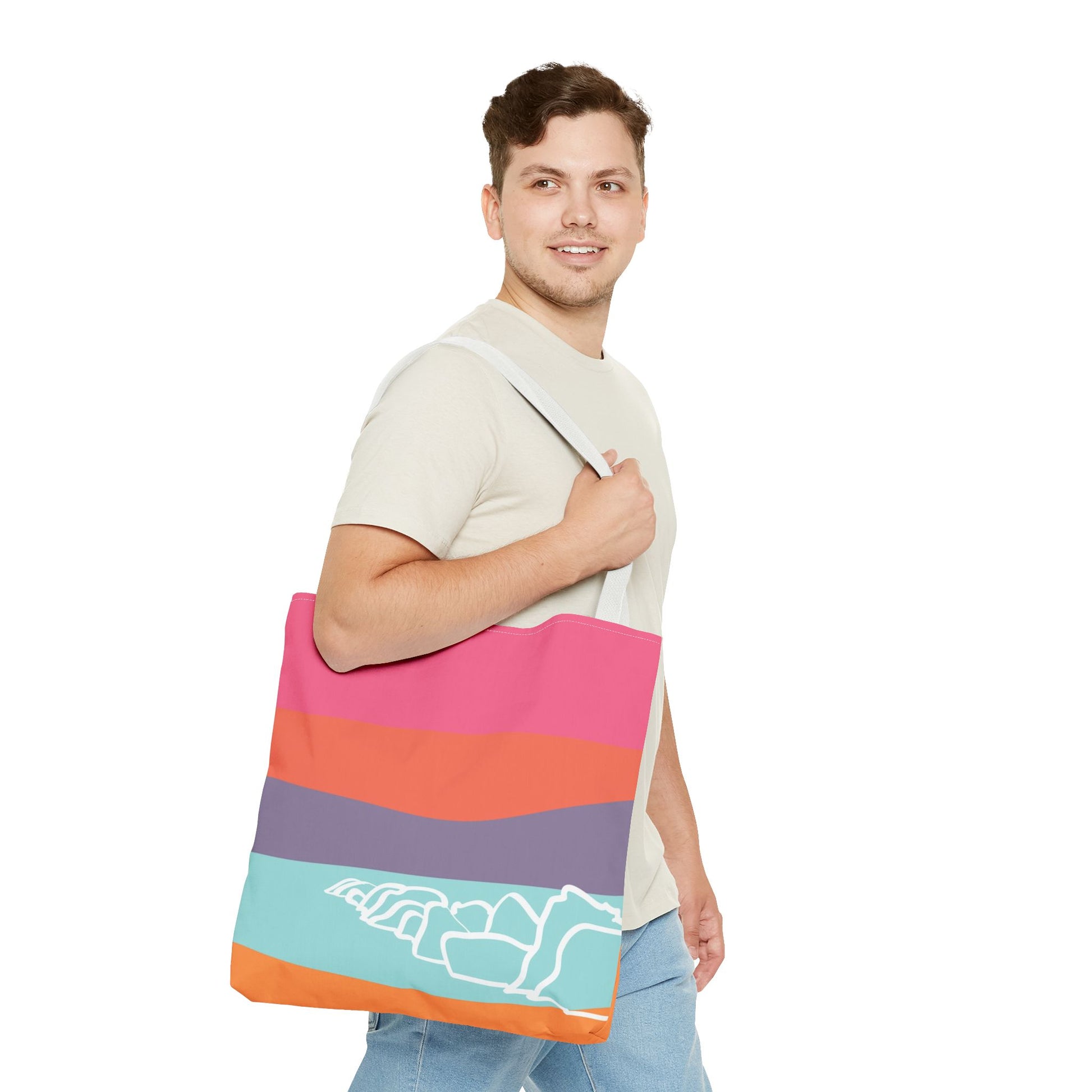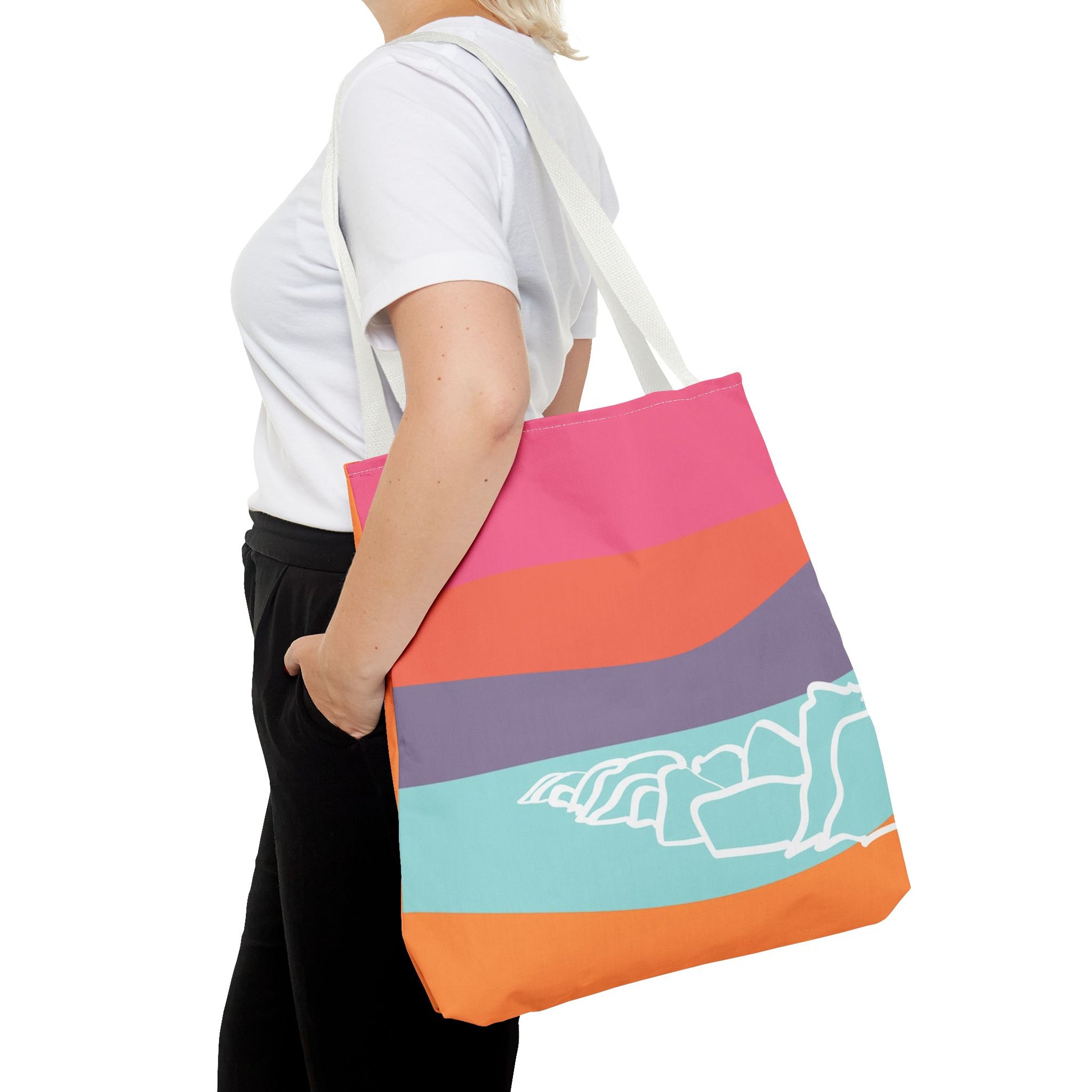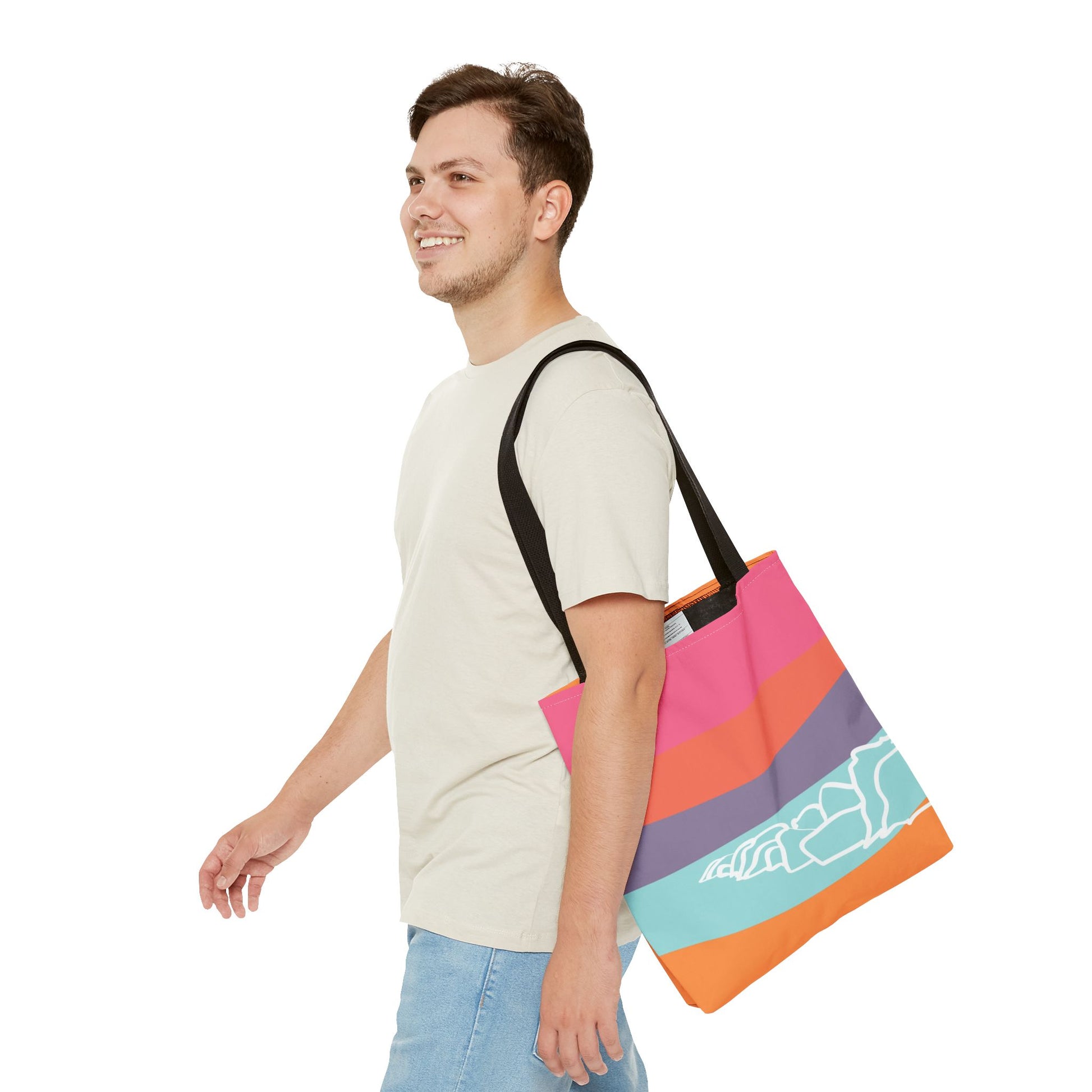 Tote Bag - Beach 感恩 Everyday Carry Bag with Solid Melon Orange Back