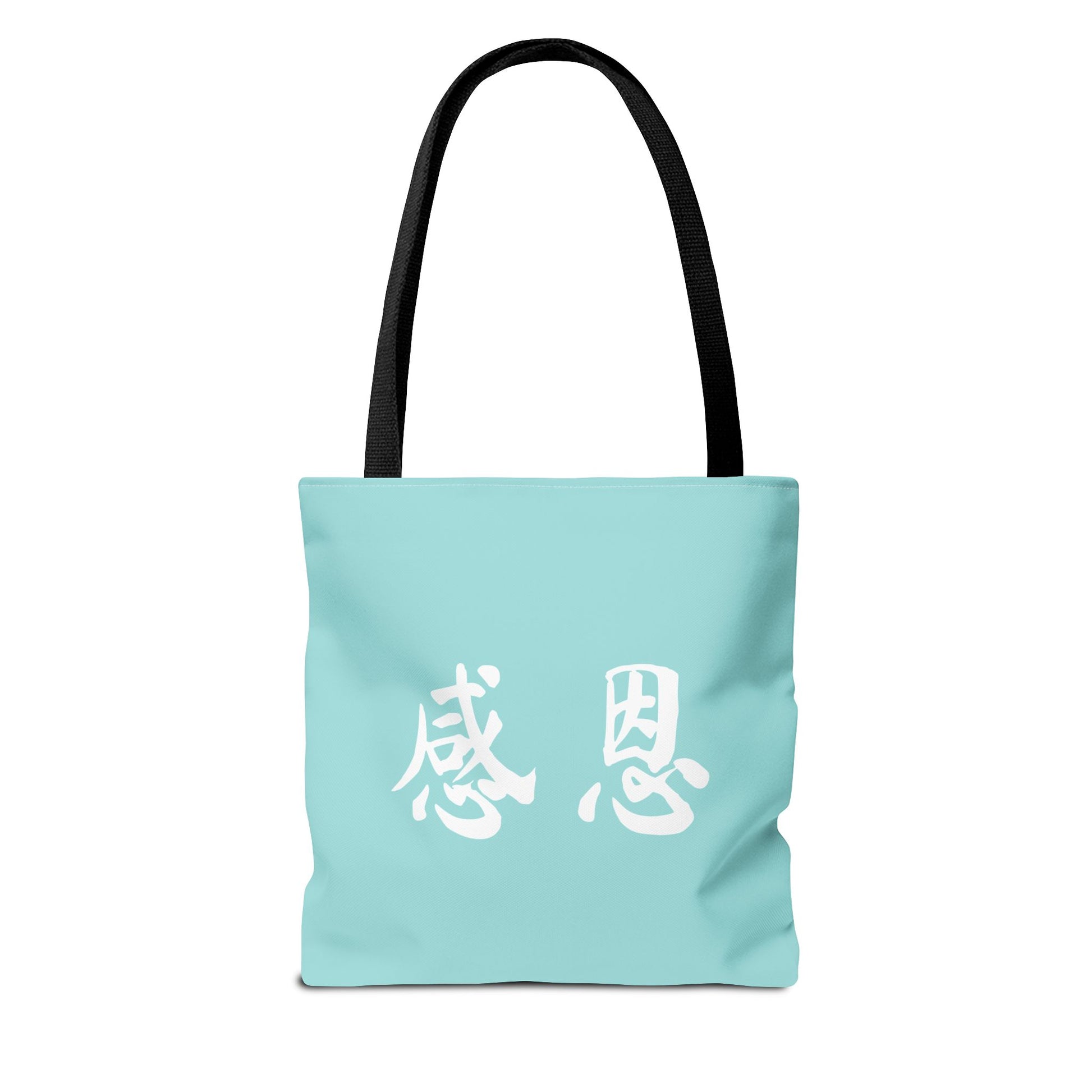 Tote Bag - Mountain 感恩 Everyday Carry Bag with Solid Mint Blue Back