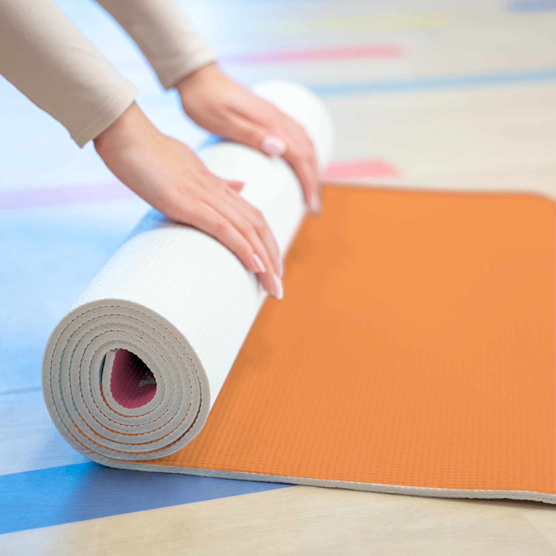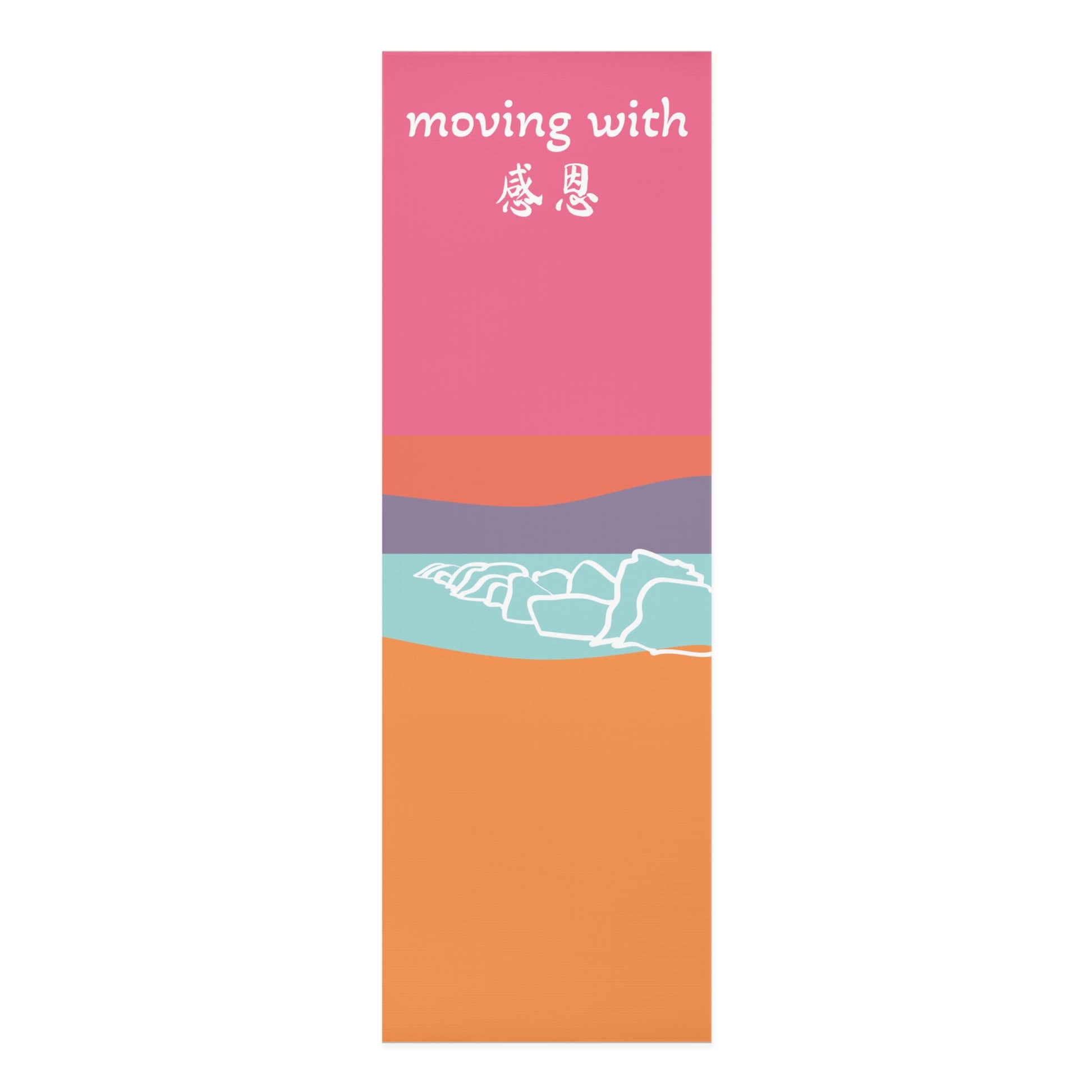 Hand Illustrated Colour Block Beach Motif 感恩 Yoga Mat gives a calming and peaceful vibe, perfect for yoga enthusiasts and beach lovers. It can enhance your yoga practice and add a touch of art to your exercise routine. Relevant for yoga lovers, beachgoers, and those looking for a stylish workout accessory. Ideal for summer, beach holidays, and yoga retreats.